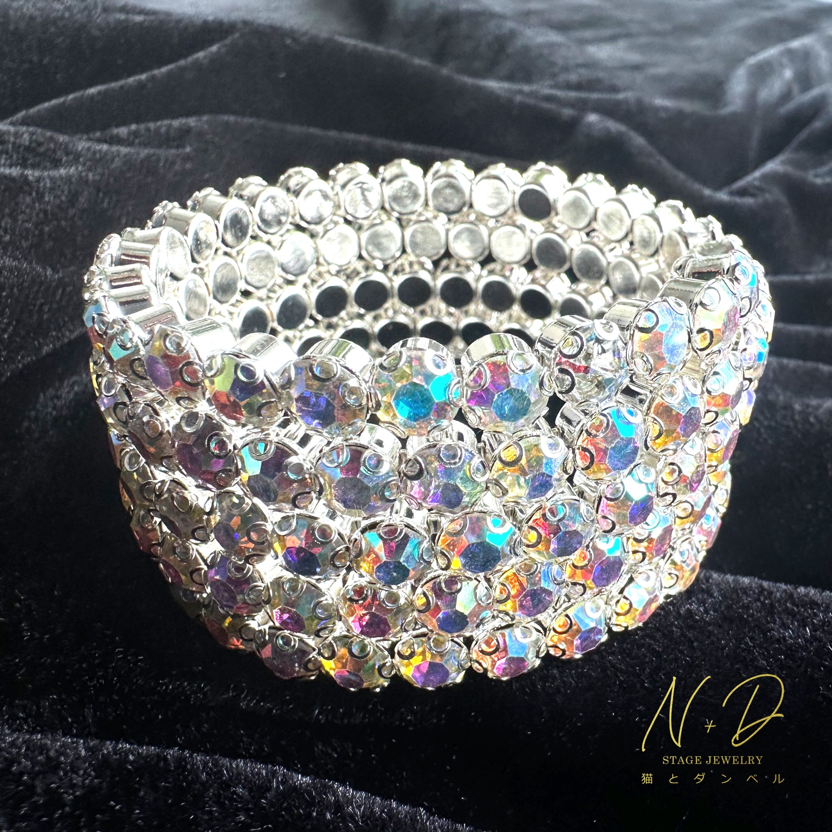 ・ゴージャスさと装着感の軽さが特徴的なブレスレットです。